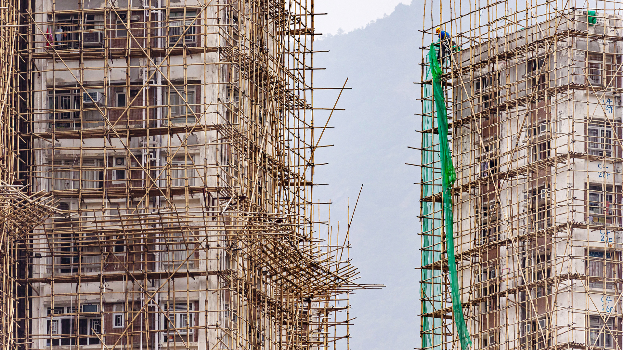 Četvrtog decembra, radnici u Hongkongu uklanjali su zaštitne mreže sa bambusovih skela na stambenoj zgradi koja je bila u fazi renoviranja.