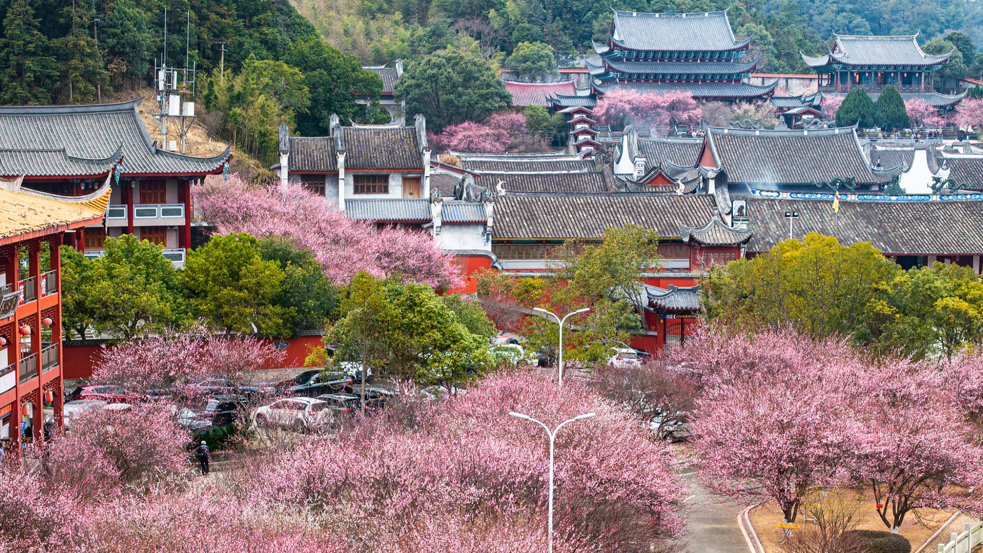 Stabla šljive cvetaju ružičastim cvetovima oko hrama Linjang u gradu Fudžou, u provinciji Fuđijan. Trenutno je najbolje vreme za uživanje u prizoru cvetanja šljive, koje privlači veliki broj posetilaca.