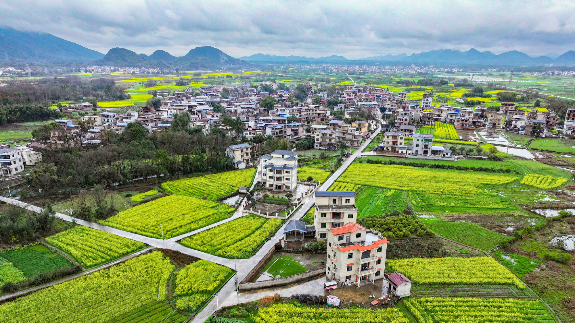 Zlatni cvetovi uljane repice u punom su cvatu, kako je i planirano u okrugu Ćuandžou, u ataru grada Guejlina, u provinciji Guangsi. Pogled iz vazduha je niz prelepih pejzažnih slika, prizor koji zaista oduzima dah.
