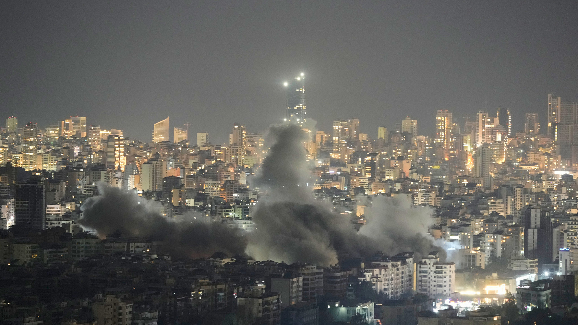 Spasioci pregledaju stambenu zgradu oštećenu u izraelskom vazdušnom napadu na Bejrut.
