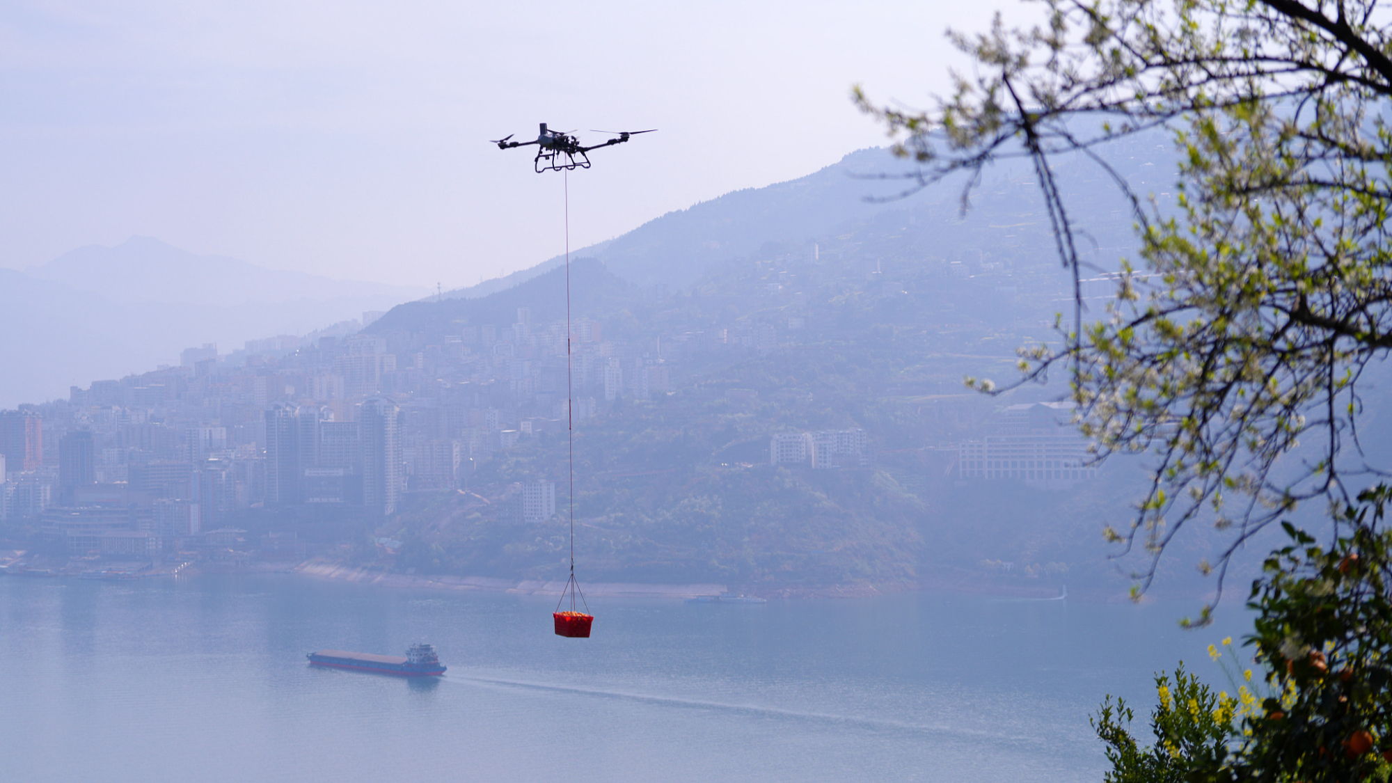 U okrugu Badung, u provinciji Hubei, seljani koriste dronove za transport prolećnih pomorandži. Lokalna uprava poslednjih godina podstiče primenu savremene opreme radi efikasnijeg transporta citrusa.