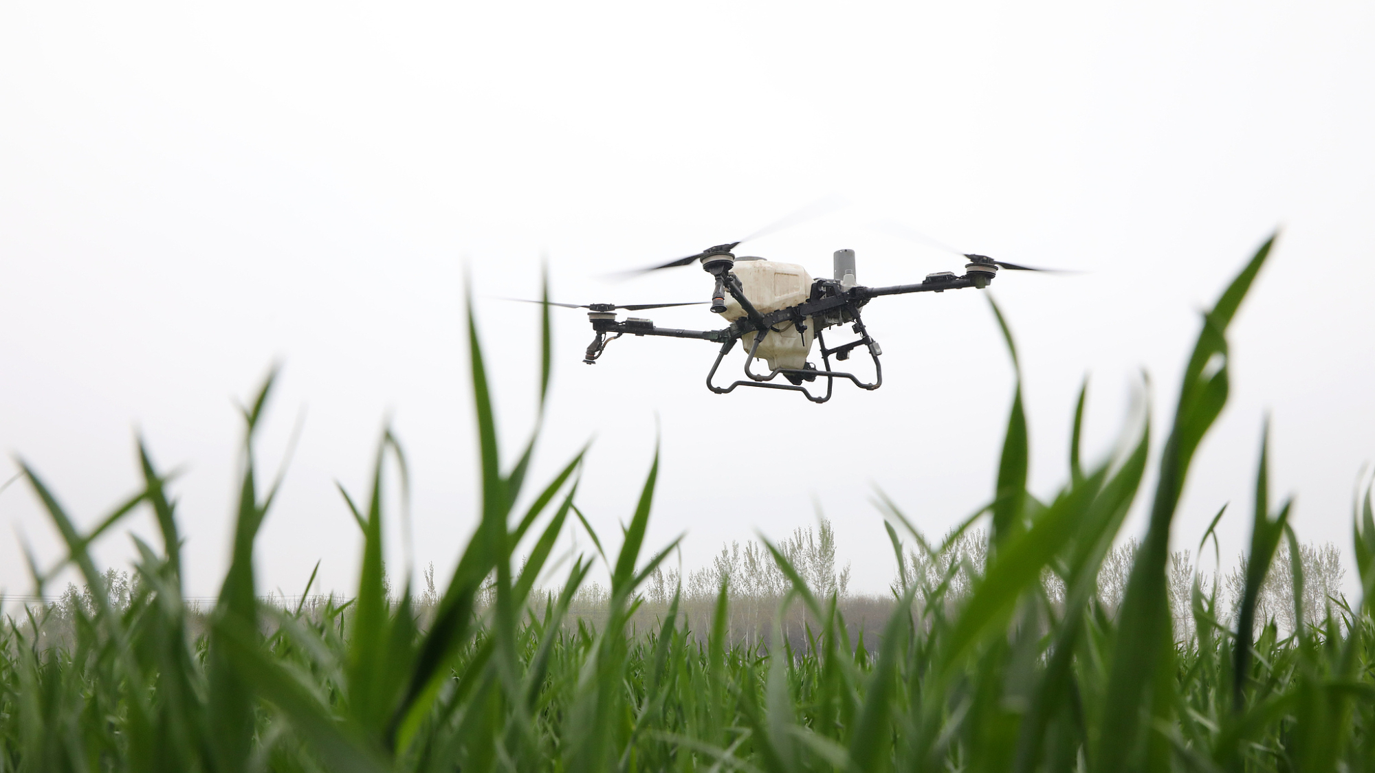 U okrugu Bosing, u provinciji Šandung, poljoprivrednici postavljaju i podešavaju opremu za navodnjavanje kap po kap na poljima pšenice i koriste dronove za zaštitu useva.