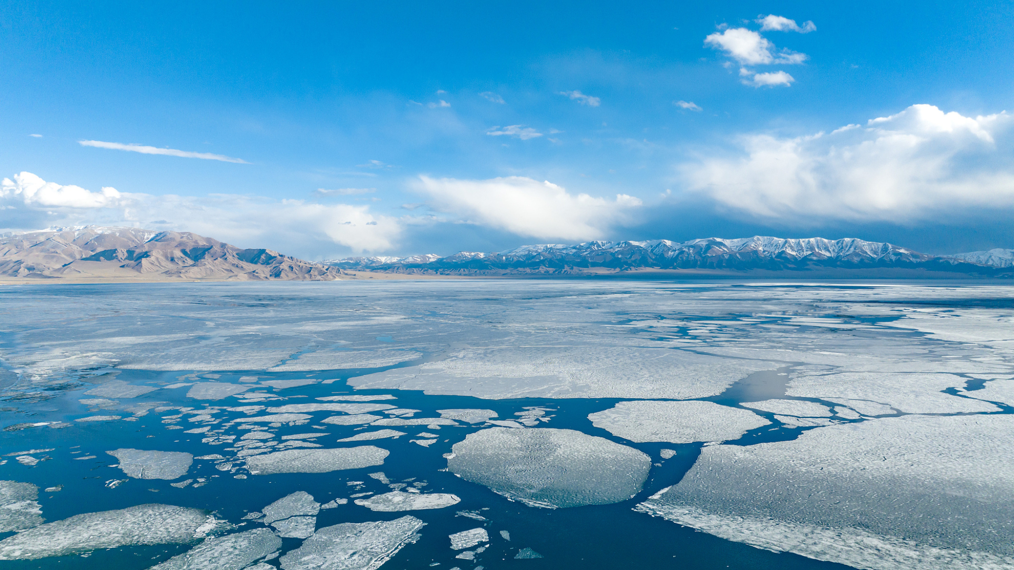 Od početka aprila, led na jezeru Sajram u Sinđijangu se postepeno topio, stvarajući veličanstveni pejzaž koji gura led.